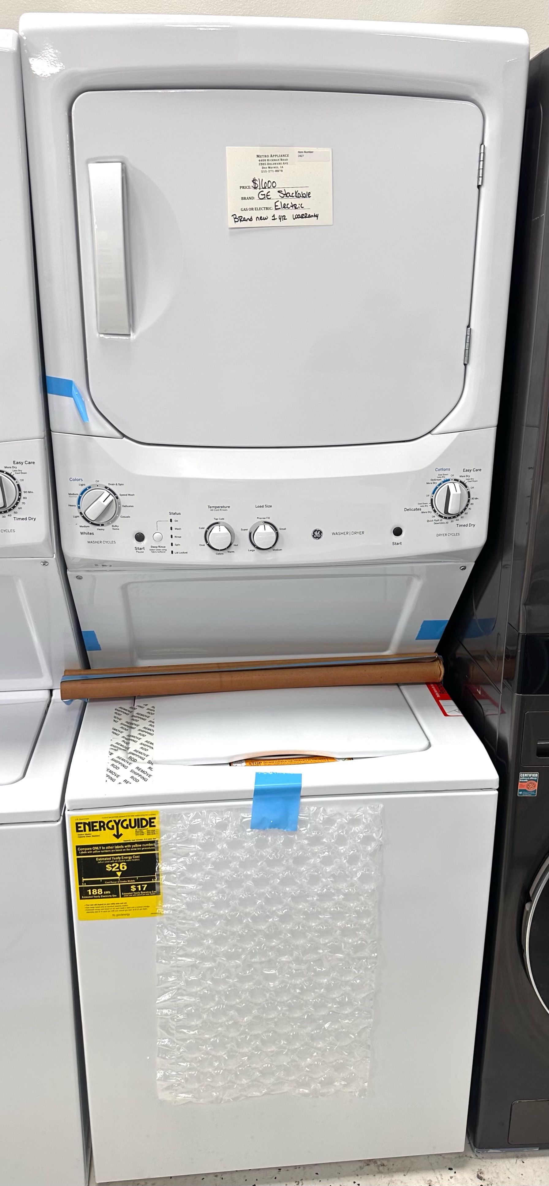 *NEW GE TOP LOAD WASHER AND ELECTRIC DRYER STACK- $1,600.00