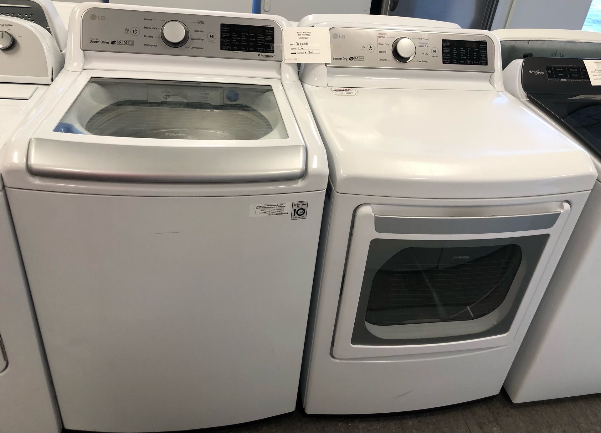 LG Top Load Washer & Electric Dryer- $625.00