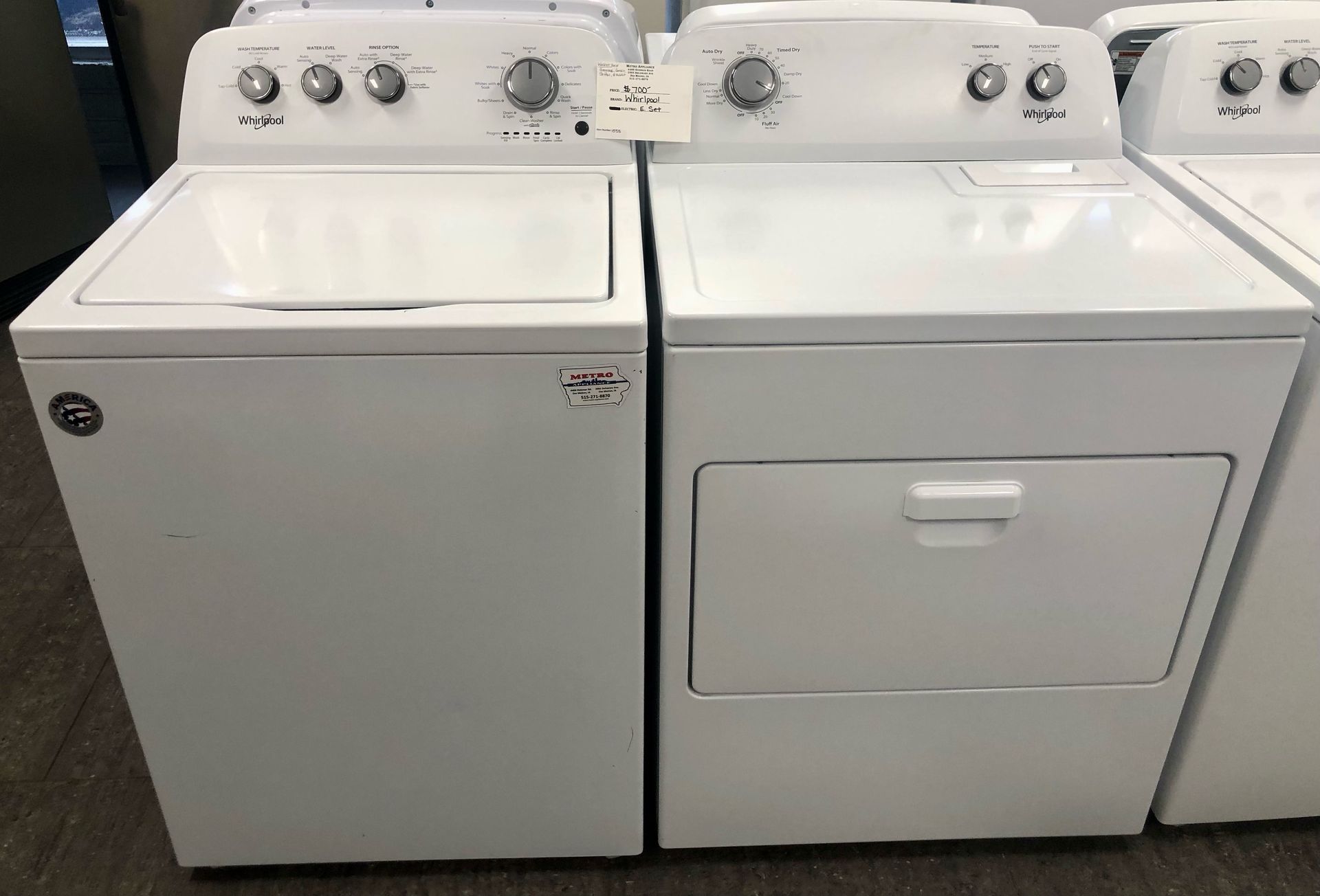 Whirlpool Top Load Washer & Electric Dryer- $700.00