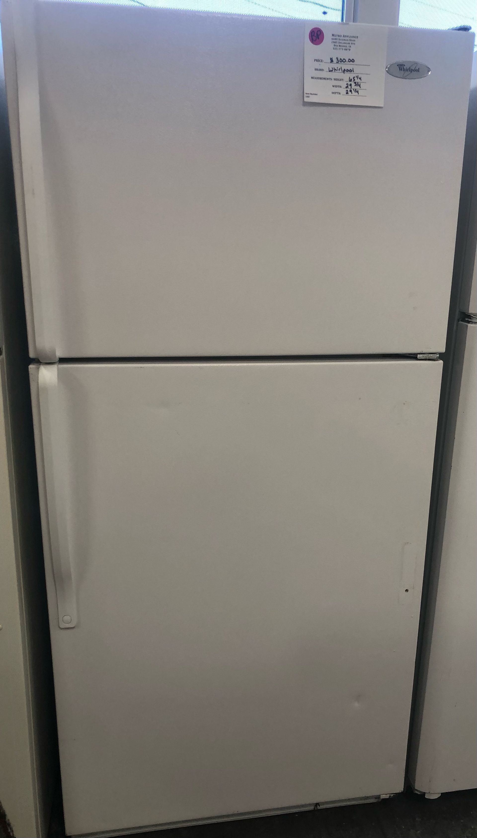 Whirlpool Standard Refrigerator- $300.00